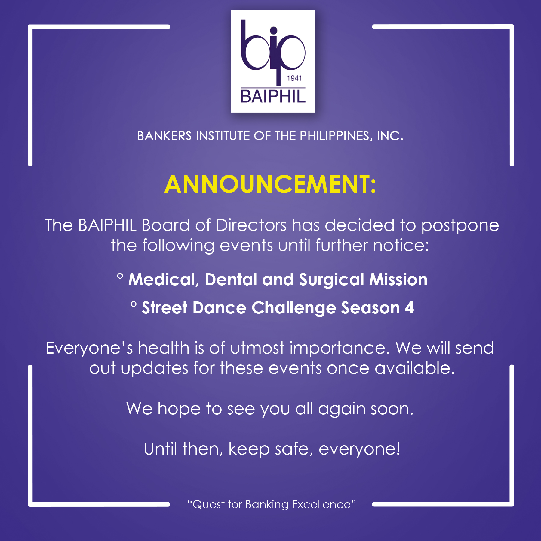 Postponement of BAIPHIL Events (April-May 2020)