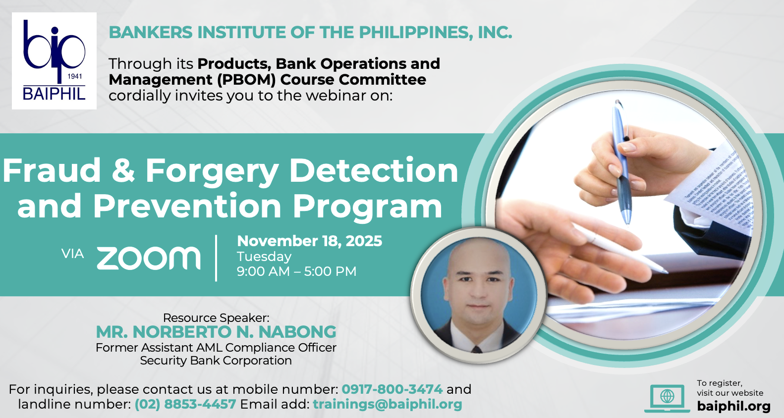 Seminars and Training Fraud and Forgery Detection and Prevention Program Course Outline: Introduction to Fake Documents Introduction: Fake Documents Definition of Terms:… Continue reading » | 0 Comments Crisis Management PROGRAM OVERVIEW Crisis management is a process that helps organizations prevent, prepare… Continue reading » | 0 Comments Signature Verification & Forgery Detection COURSE DESCRIPTION & OBJECTIVES: Millions of pesos are lost each year by… Continue reading » | 0 Comments Fair Dealings: Ensuring Compliance with DOSRI & Related Party Transactions (RPT) COURSE OUTLINE: Part I : Background/Introduction What is BSP’s general policy on… Continue reading » | 0 Comments Previous 1 2 3 4 … 12 13 Next
