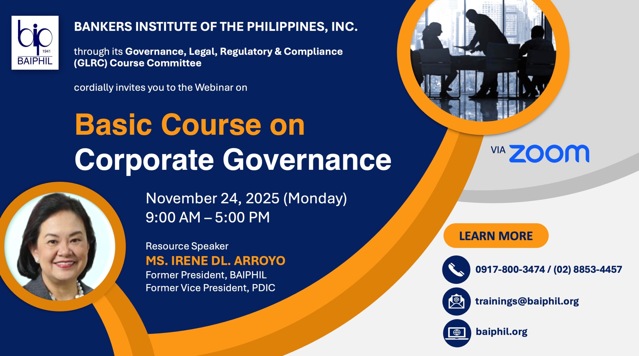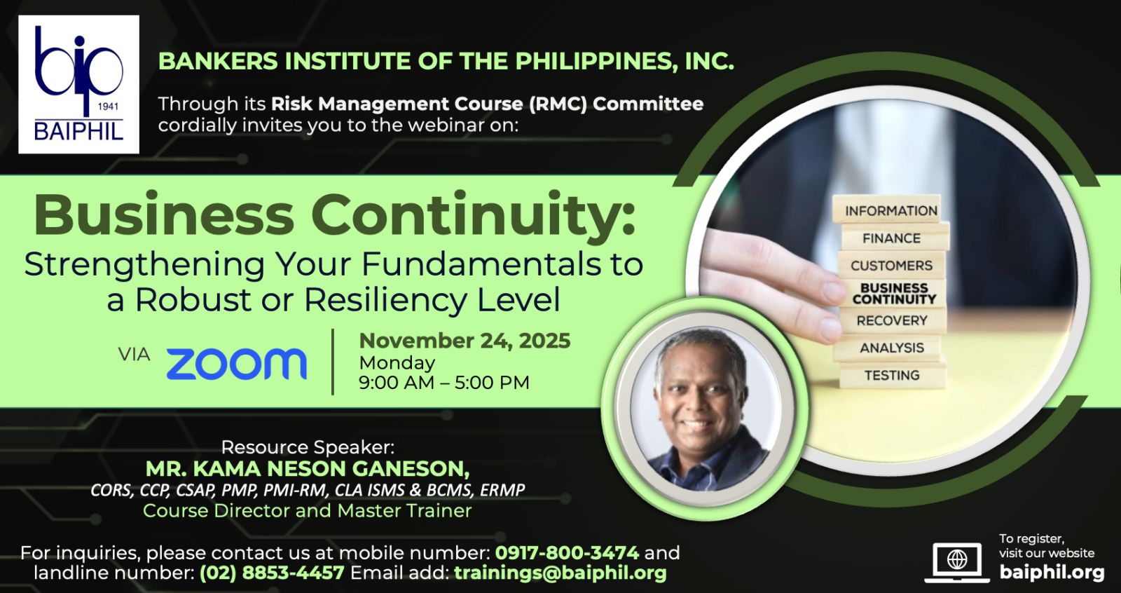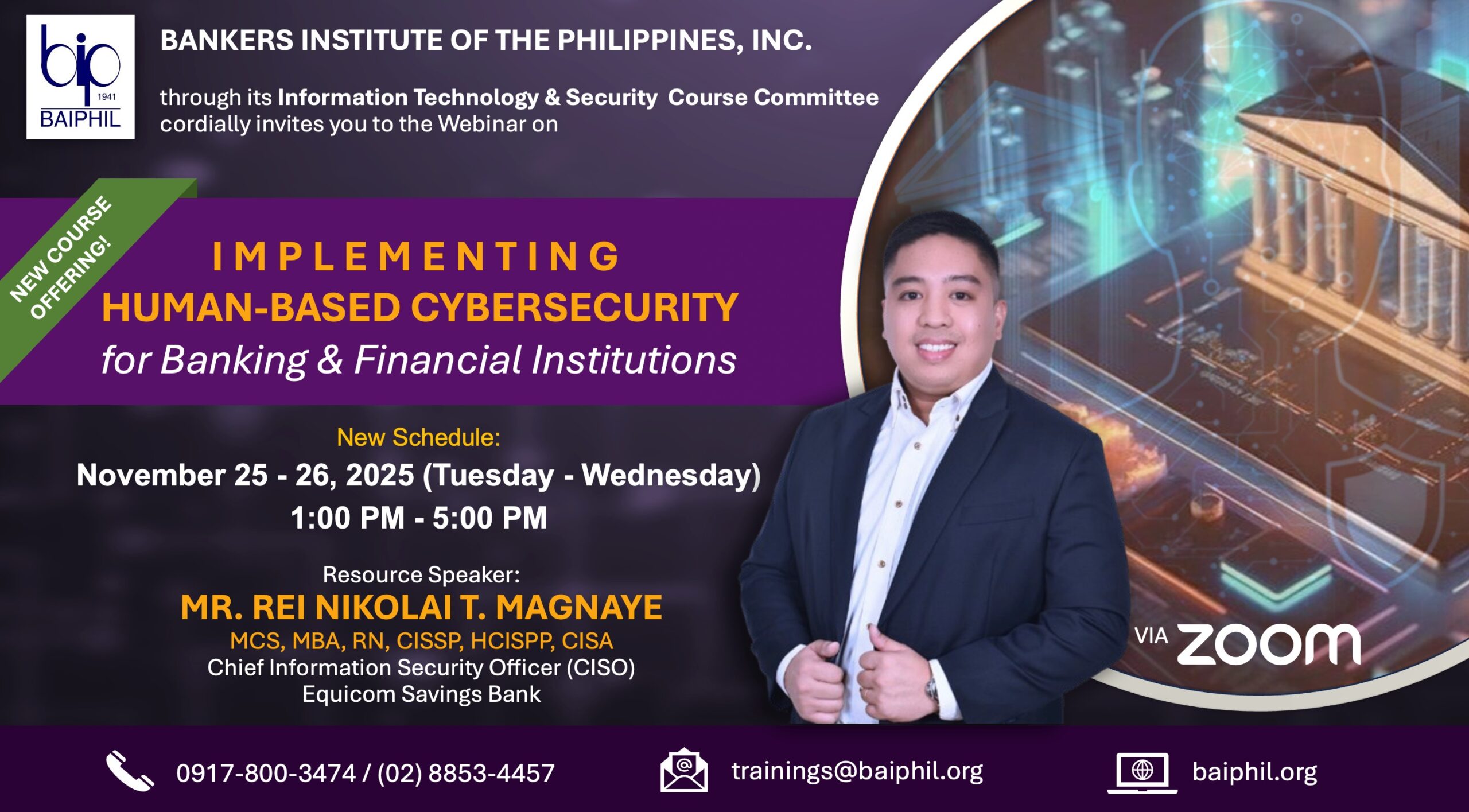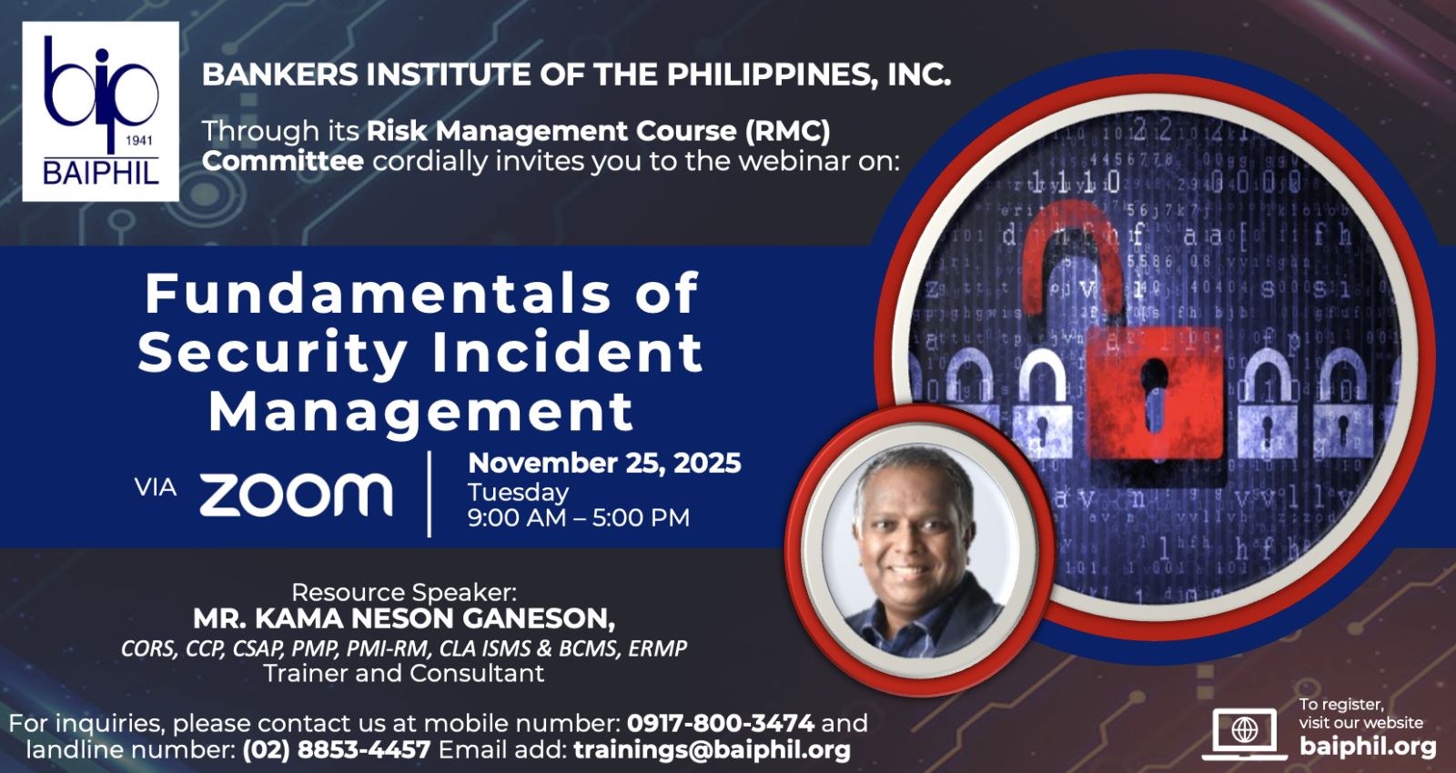 Seminars and Training Basic Course on Corporate Governance Course Outline: Overview of Corporate Governance Course Objectives & Introduction Definitions… Continue reading » | 0 Comments Business Continuity: Strengthening Your Fundamentals to a Robust or Resiliency Level Program Description: Resiliency in business continuity has become mission‑critical for the… Continue reading » | 0 Comments Fundamentals of Security Incident Management Program Overview Incident management is a hot topic in the security industry,… Continue reading » | 0 Comments Implementing Human-Based Cybersecurity for Banking and Financial Institutions Course Description: This course will provide foundational knowledge, skills, and behaviors required… Continue reading » | 0 Comments Previous 1 2 3 4 5 … 12 13 Next